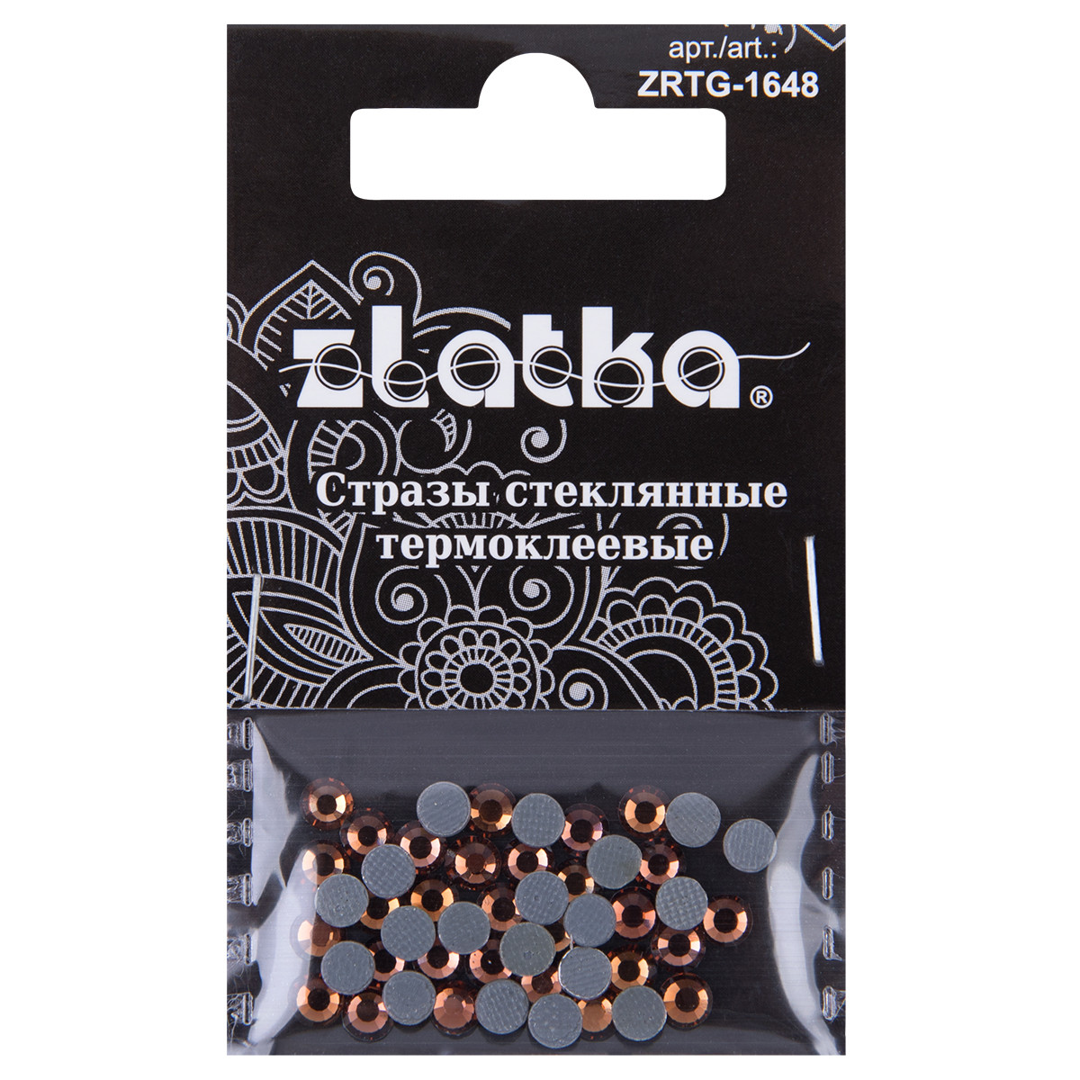 Страз клеевой " Zlatka" ZRTG- 1648 SS16 цветные 3. 9 мм стекло 48 шт в пакете с картонным еврослотом №17 св. коричневый ( Smoked Topaz)